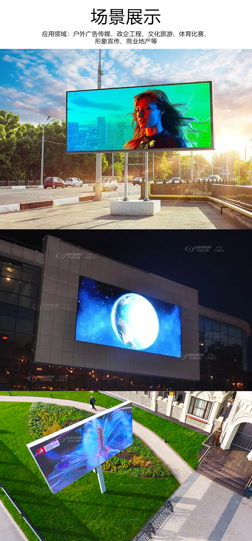 7、应用领域:户外广告传媒、政企工程、文化旅游、体育比赛、形象宣传、商业地产等;